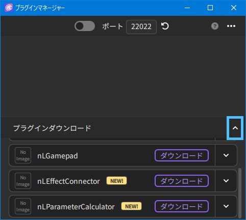 2. プラグインマネージャーが起動したら下部にあるプラグインのダウンロードの右のvボタンをクリックして任意のプラグインをダウンロードします。