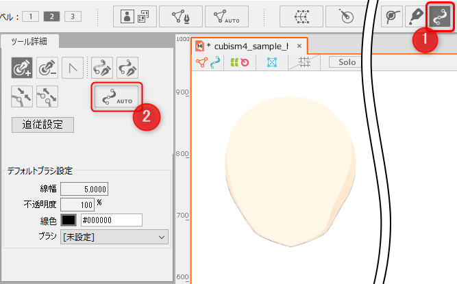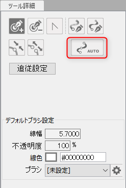 | 获取线宽的设置 | * 基本上不需要从默认值重置。 颜色变化阈值: 默认设置为0.1。 数字越小,被认为是相同颜色的颜色范围就越广。 认可为线的最大宽度: 默认设置为5像素。 认可透明的最小值: 默认设置为0%。 忽略不可见的点: 不透明度为0或线宽为0的控制点从自动设置中排除。 |