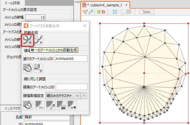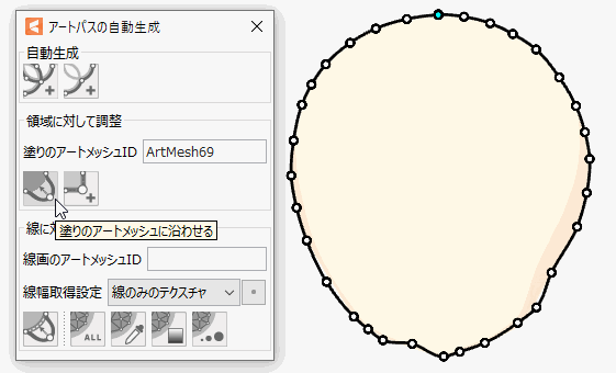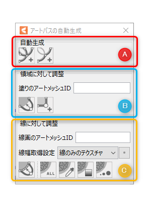 | ③ | ![]() | 在网格的轮廓上自动生成图形路径。 * 在自动生成的情况下,ID会自动插入到[自动生成图形路径对话框]中的[填充图形网格ID]中。 |