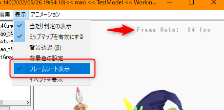 如果您选中[显示]菜单 → [帧率显示],帧率将显示在模型显示区域的顶部。