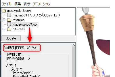 如果物理模拟(.physics3.json)文件中不存在FPS信息,则将使用Viewer上显示的帧率显示来计算物理模拟。