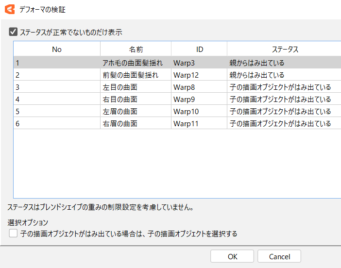 此外,如果选择要编辑的变形器后单击[OK],则会自动选择对象变形器(或多个变形器),搜索更加方便。
