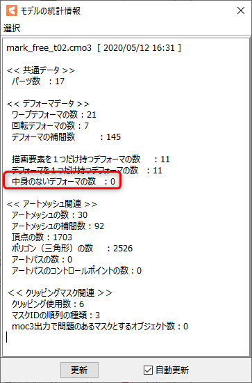 [空变形器的数量]显示在模型统计中。