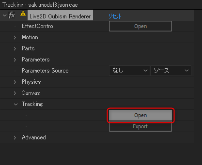 单击[Live2D Cubism Renderer]效果的[Traking] → [Export],更新并保存跟踪设置。![]()