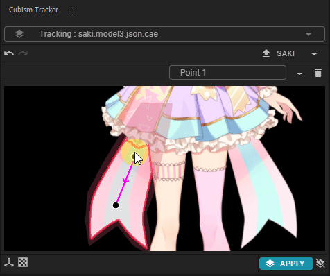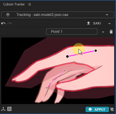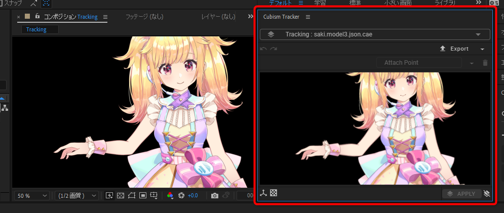 单击Cubism Tracker面板中的[APPLY]按钮(③),追加用于控制跟踪选择层的效果和表情。![]()