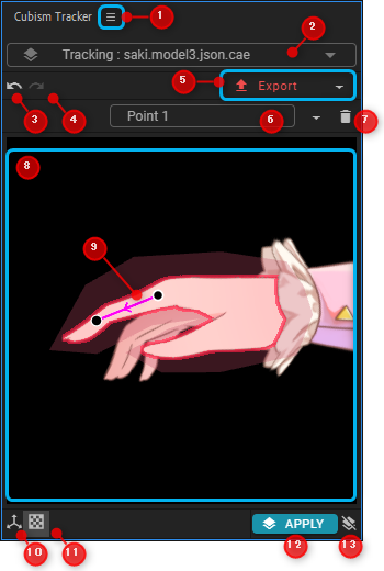 | 1 | 面板菜单 | CubismTracker面板菜单打开。 |