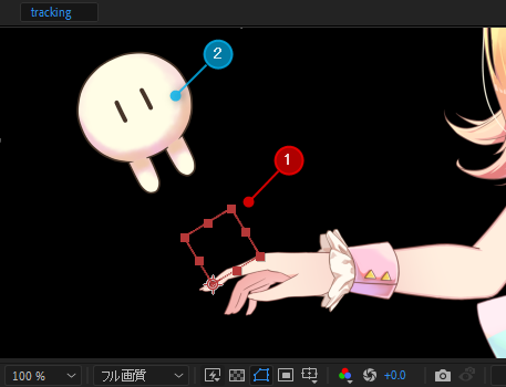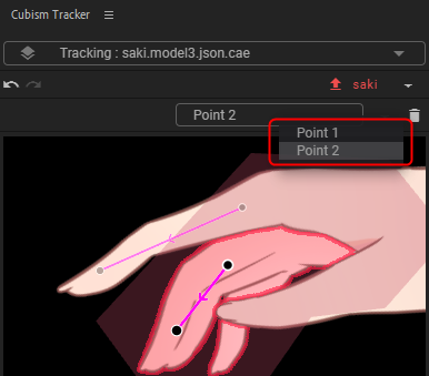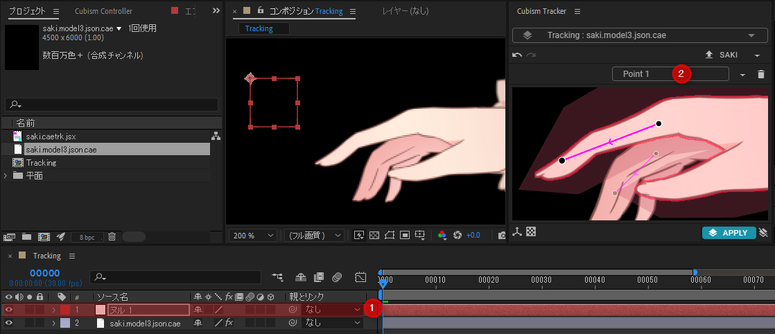 选择要跟踪的层(①)和Cubism Tracker面板中的“附加点”(②)。![]()