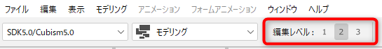 Cubism Editor有一个编辑级别,您可以在编辑级别[1]、[2]和[3]之间切换。