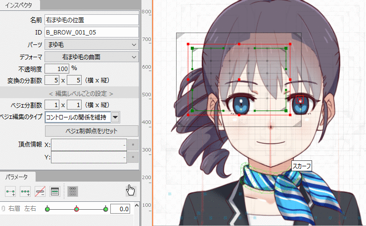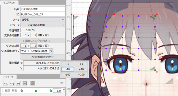例如,通过在画布坐标中指定一个数值,左右眉毛的移动可以移动相同的量。