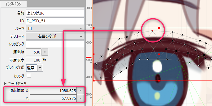当您选择图形网格或变形器的顶点时,将在检查器底部的[顶点信息]中显示画布的座标。