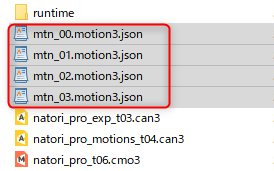 | 9 | .motion3.json | 输出动画中设置的各场景的动态数据。 |