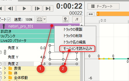 - 在要导入动态的模型的轨道名称(①)部分按右键。