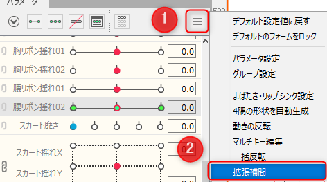 2. 单击[参数面板]中的[面板菜单] → [扩展插值]。