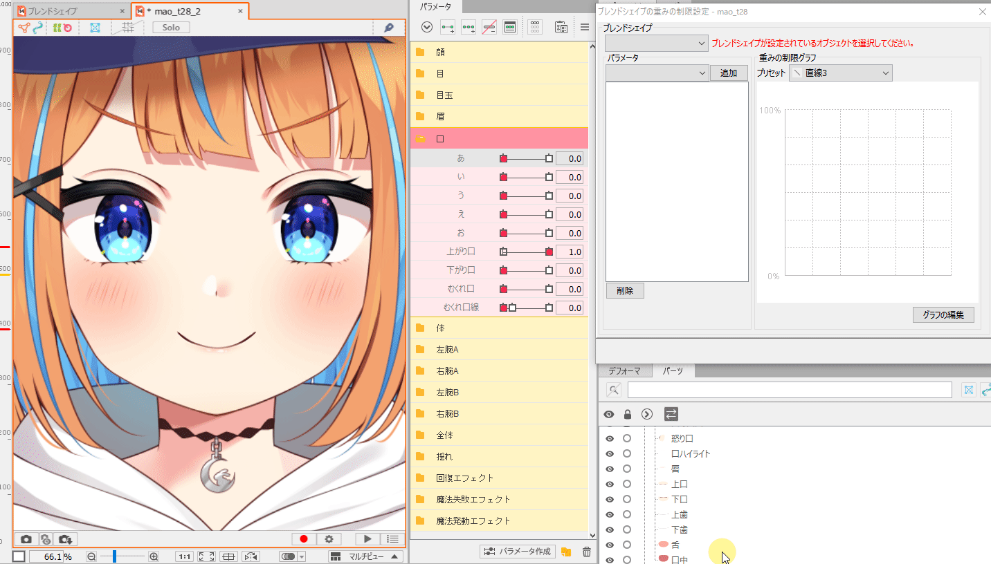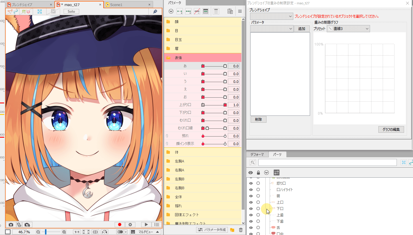 在这种状态下,如果检查参数面板的表情,“A”和“I”显示得很漂亮,但“U”、“E”和“O”仍然损坏。
