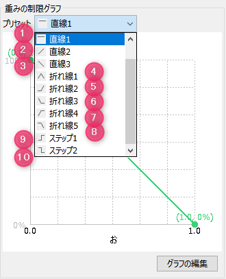 在权重限制设置中,除了预先准备好的预置设置外,还有一个可以进行更高级设置的[图形编辑]功能。