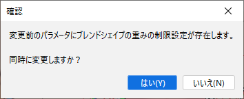 当对已设置融合变形权重限制的参数执行“变更”操作时,将显示以下确认对话框。选择“是”将允许您更改权重限制设置。