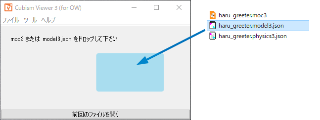 当Cubism Viewer开启时,拖放MOC3或model3.json文件。