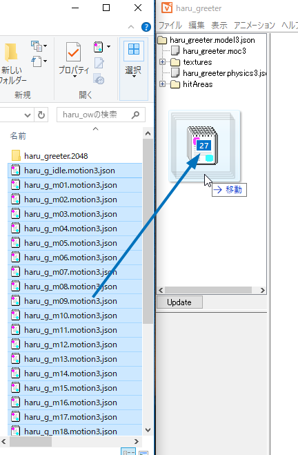 您还可以通过拖动来导入导出的动态(motion3.json)文件。