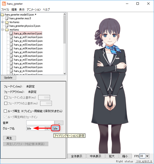从导入的动态中选择要“Idle”的文件,点击下图中红圈内的[Idle]按钮,输入“idle”作为组名并进行设置。
