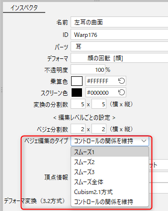 如果想要使用Cubism 5.2或更早版本中的方法进行变换,请勾选[贝塞尔转变(5.2方法)]。