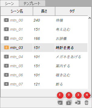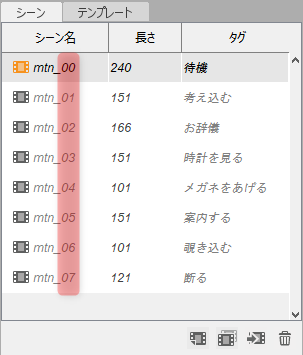 [场景面板]显示所创建场景的[场景名称]、[长度]和[标签]的列表。