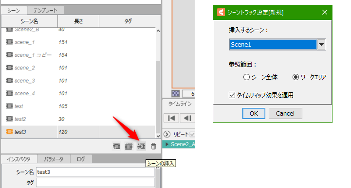 - 通过右键单击场景轨道并选择[从场景轨道创建序列图片轨道],您可以将场景轨道转换为序列图片轨道并追加。当由于大量使用场景轨道而导致绘制变慢时,它也可以用作代理。