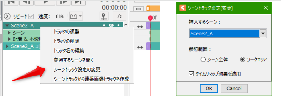 - 右键单击场景轨道,然后单击[变更场景轨道设置]以打开设置对话框。