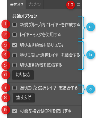 | b | 裁剪选项 | [裁剪]专用选项。 [合并填充和选择图层]在勾选[填充裁剪区域]时可以使用。 |