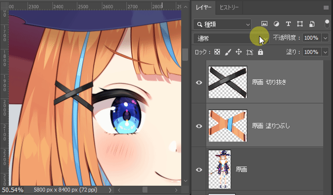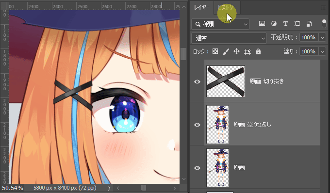 然后会根据原画(帽子内侧)的信息进行扩展。会在原图层下方创建像素图层,并在选区内的“透明部分”应用填充。