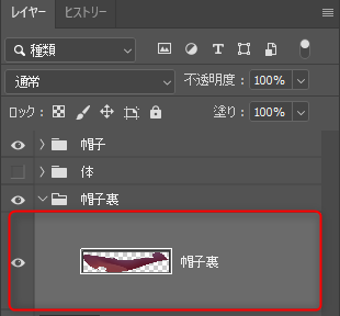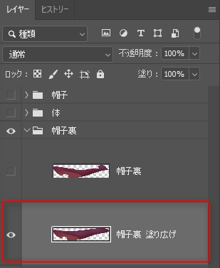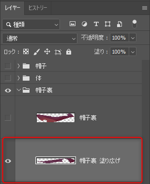 选择要进行扩展的图层,并指定选区。以下是为了扩展帽子内侧而指定选区的示例。