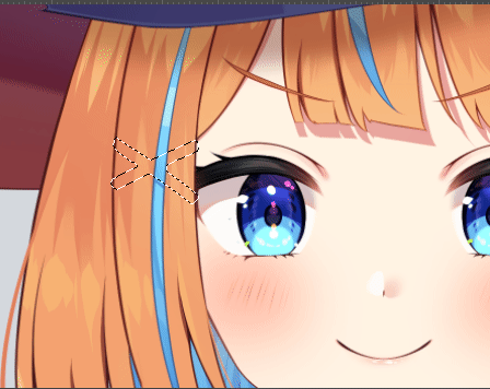 以下是为了从头发中裁剪出黑色发夹而指定选择区域的示例。