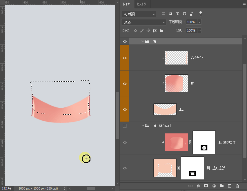- 选择填充组(在上述示例中,组名为①“颈部”)。