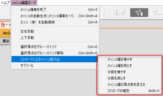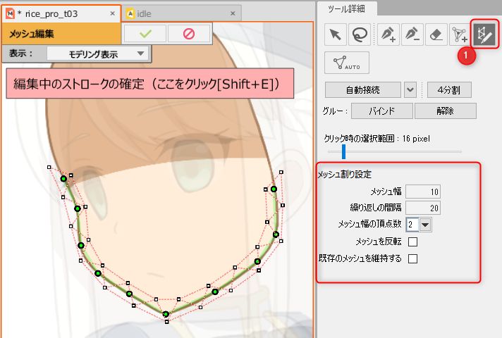 在[网格编辑模式]中,选择[按笔触进行网格划分]图标(①)。