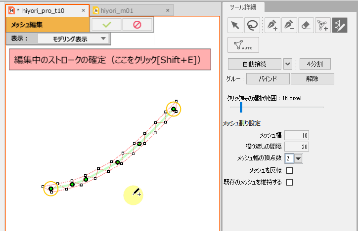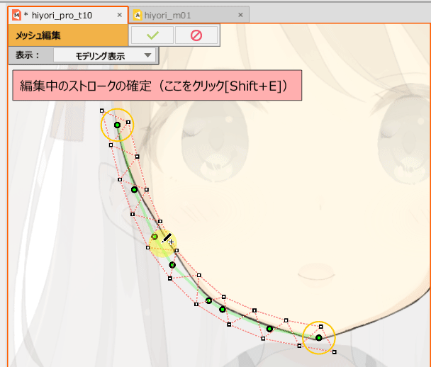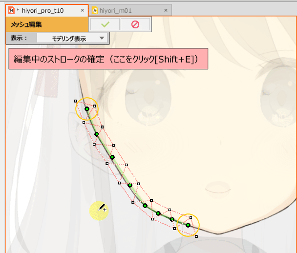 | [Ctrl] + 单击 | 在笔触线上追加一个编辑点(橙色圆圈)。 |