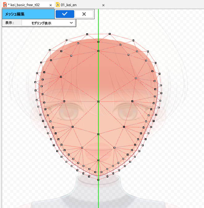 视图上的显示切换到网格编辑模式,可以进行追加或删除顶点等编辑。