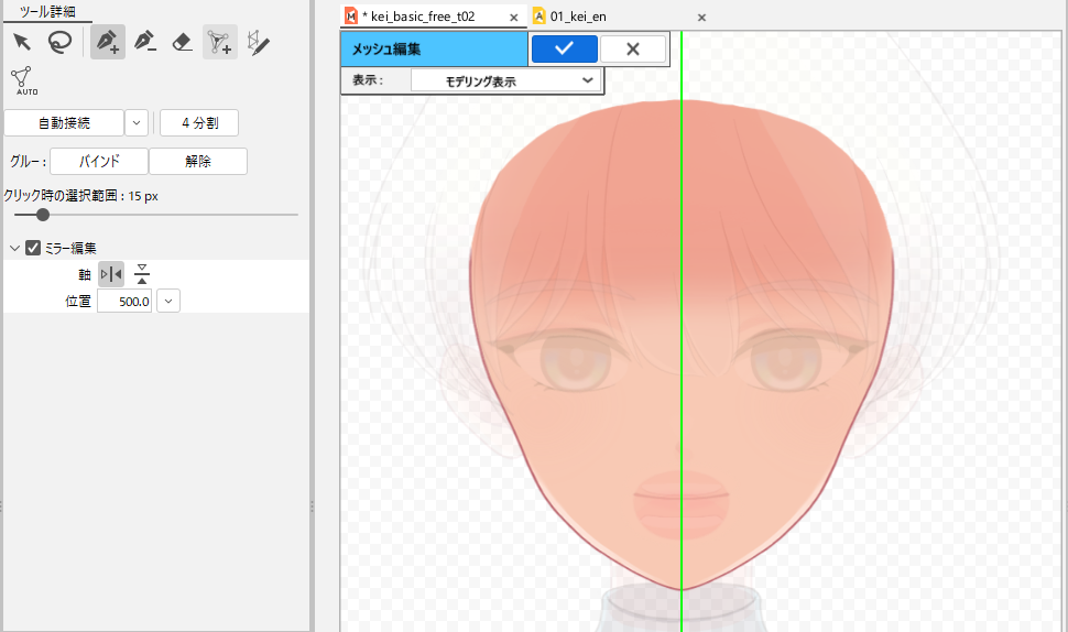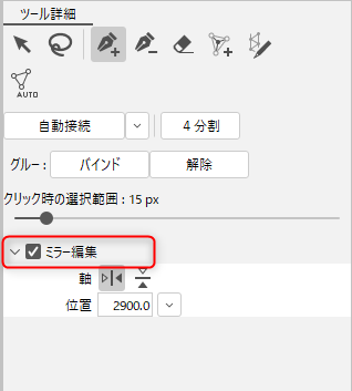 选中[工具详细]面板的[镜像编辑]。