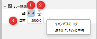 | 3 | 您可以指定轴位置。 画布中心: 轴将置入画布中心。 所选顶点的中心: 轴将置入所选顶点群的中心。 |