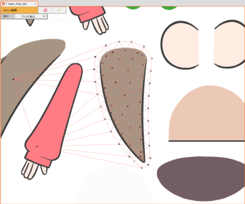 在这种情况下,请在[网格编辑模式]的[Atlas显示]中编辑网格,或重新排列图形网格,使其在[纹理集]中不重叠。