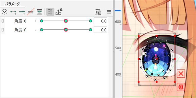 当结合参数时,可以通过按住[Shift]并拖动在上下左右方向固定轴,变更参数值。