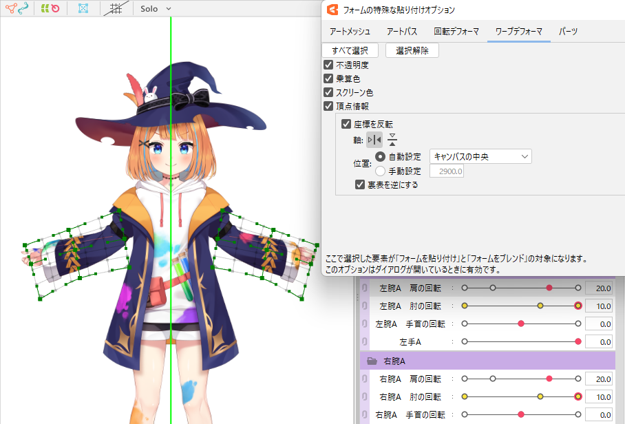 【使用示例】反转并粘贴旋转变形器的角度