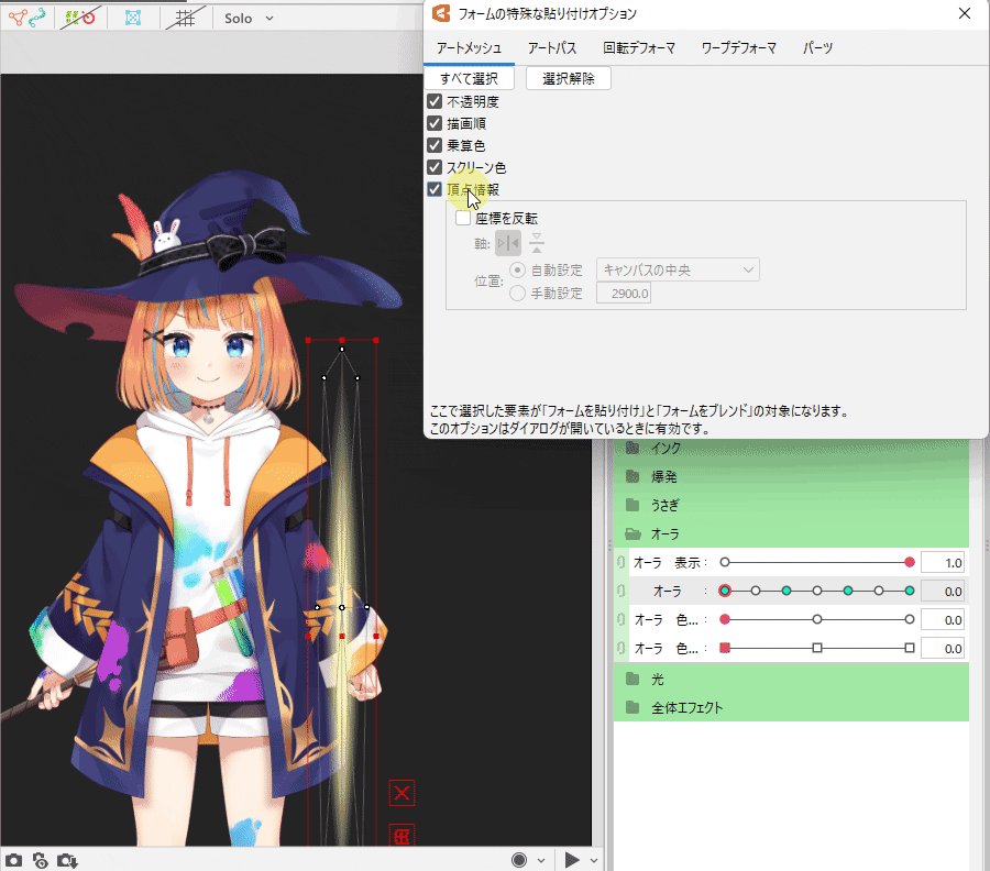 此功能允许您在粘贴形状时选择任意属性,例如[不透明度],[绘制顺序],[正片叠底色/滤色]、[顶点信息],然后将其粘贴到关键点中。