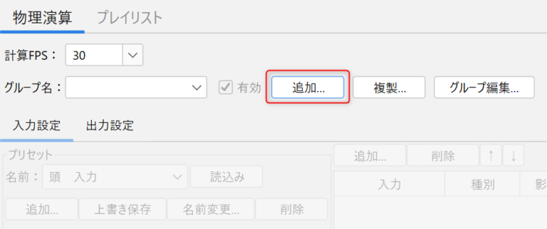 在创建物理模拟群组之前,无法操作输入/输出设置。