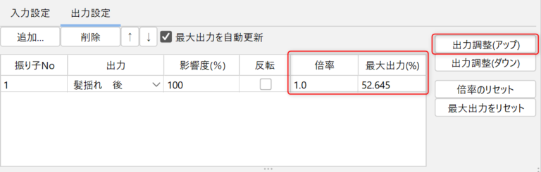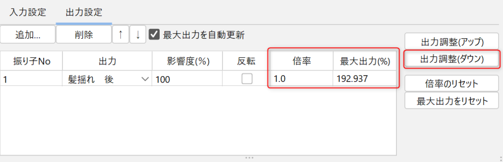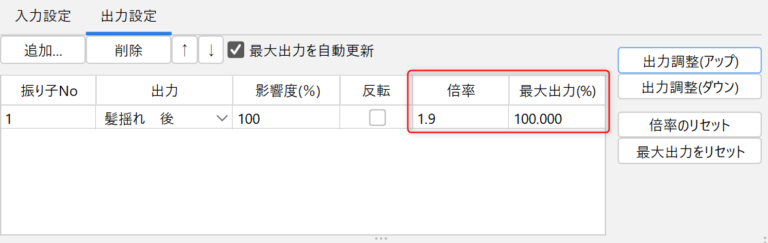 此外,还可以将[倍率]设置为任意值并调整摇动幅度,或根据[最大输出力(%)]自动调整。