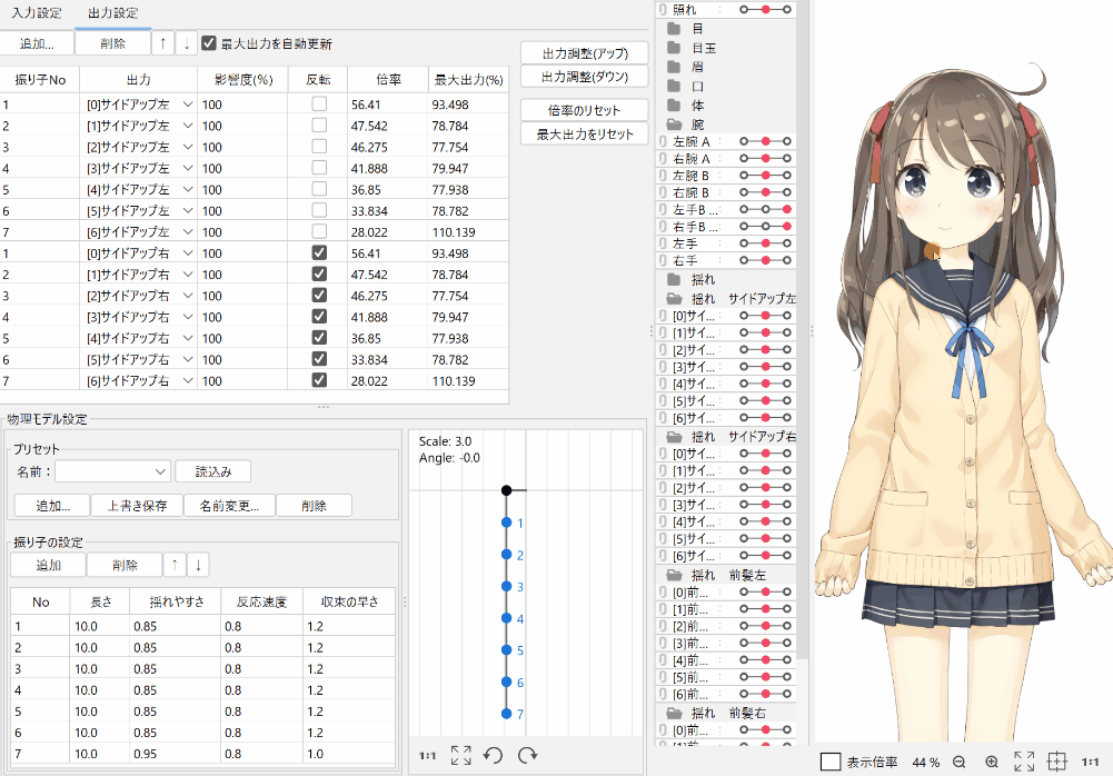 摇动的幅度也受[输入设置]和[物理模拟模型设置]的影响。