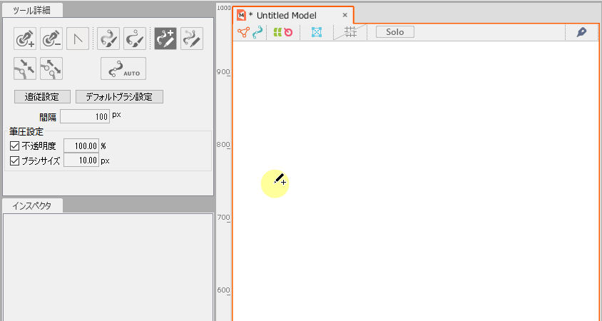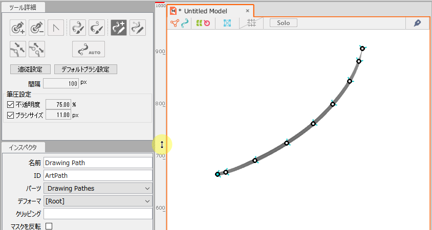 单击图形路径工具图标,选择工具详细面板中的[使用笔触创建图形路径](①)、[使用笔触编辑图形路径](②)来执行。