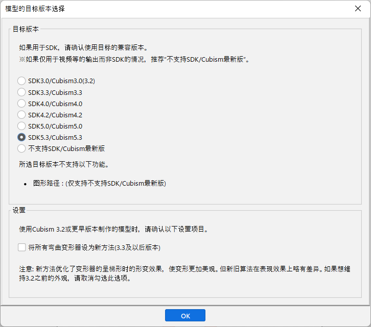 | SDK5.3/Cubism5.3 | ·图形路径(仅支持“不支持SDK/Cubism最新版”) |
