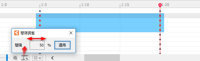 打开[调整间隔]对话框,直接输入间隔值,或者在输入框左右拖动输入数值,并单击[应用]按钮。