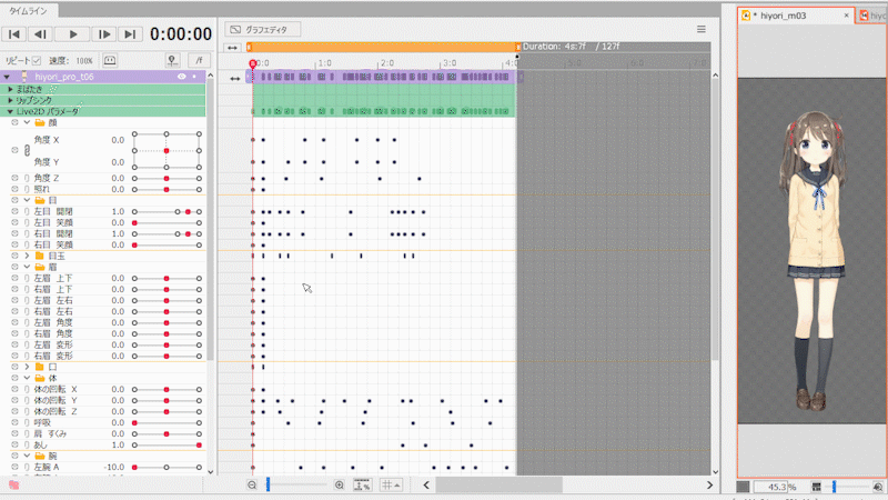 您可以通过按住[Shift]并编辑Live2D参数来输入更精细的值。