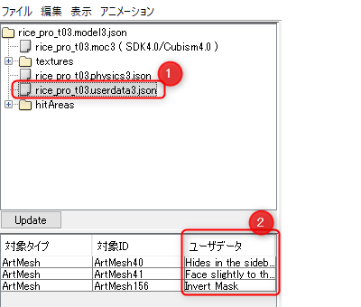 .motion3.json中设置的Event信息显示在设置项目区的底部。