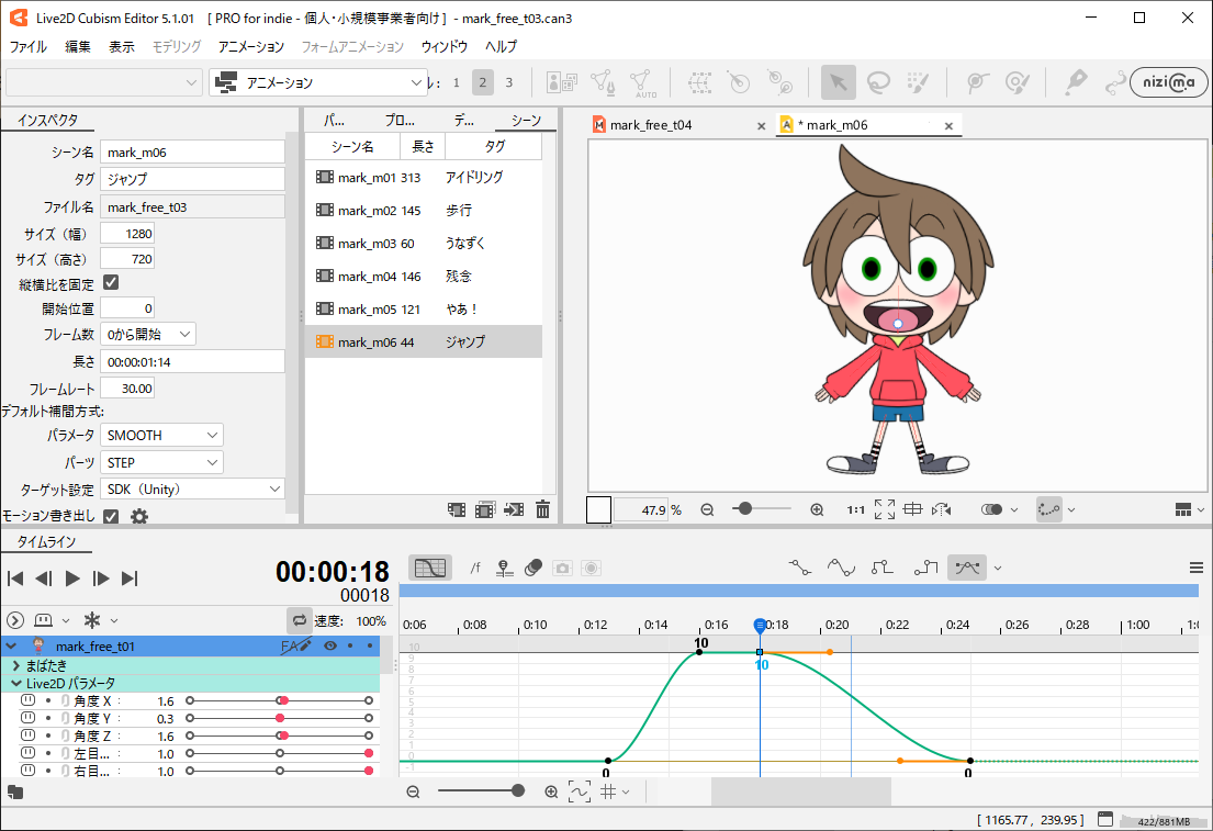 将在STEP1中准备的数据导入到Cubism Editor中并添加动作。